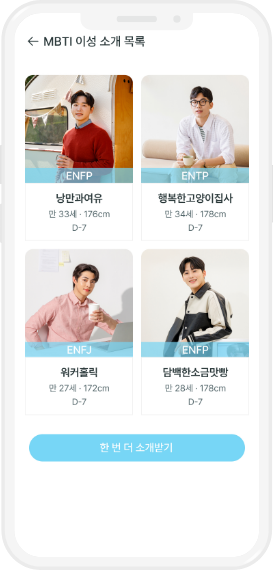 1:1 매칭 방식이 아닌 서로 다른 카드가 도착하게 되어 내가 좋아요를 받을 수도, 보낼 수도 있는